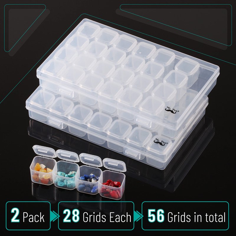 Mr. Pen- Diamond Painting Bead Storage Containers, 28 Grids, 2 Pack, Includes 160pcs Label Stickers, Diamond Art Bead BoxOrganizer