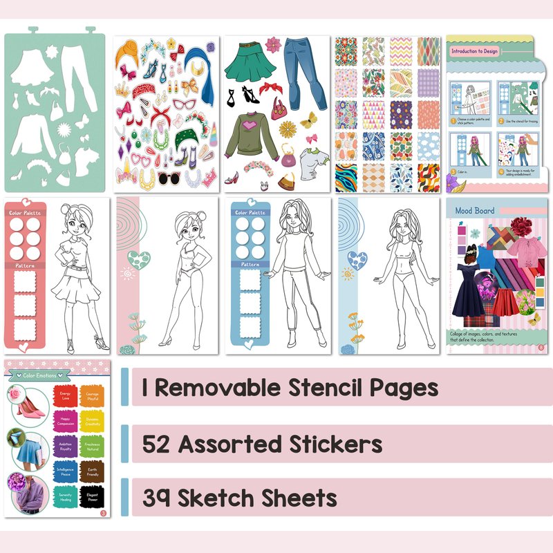 - The included stencil features a variety of shapes and patterns that are easy for kids to trace and use, helping them create their very own fashion designs with ease and precision.