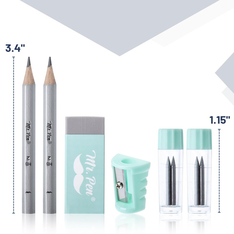 - With the inclusion of a pencil sharpener, eraser, and 2 pencil lead refills, this set keeps you equipped for prolonged use, eliminating the need for frequent purchases of additional supplies.