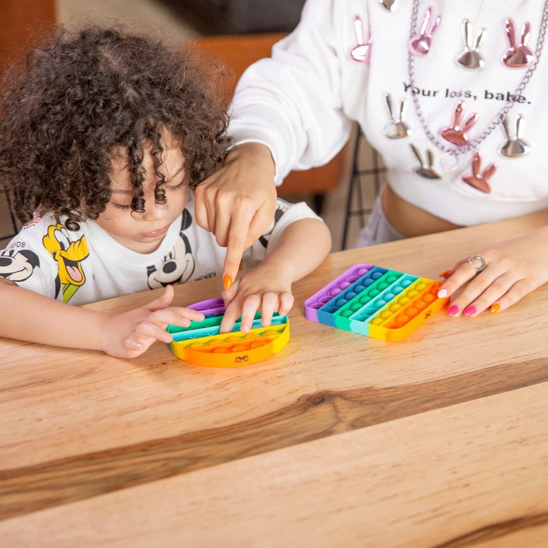 - Package includes 2 rainbow Poppers Fidget toys. One is circle-shaped, and the other is square. You can choose the one you like and enjoy the game.