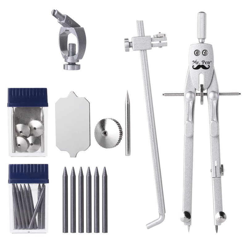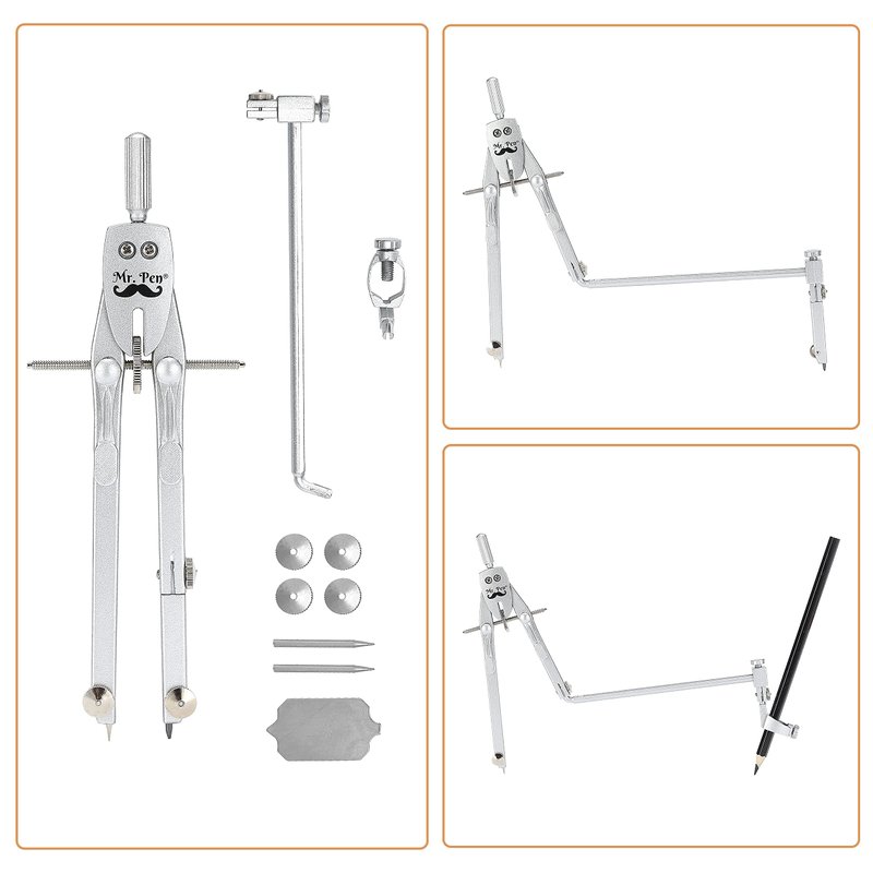 Mr. Pen- Professional Metal Compass with Wheel, Lock and Extension Bar for Geometry, Drafting, Math, Drawing, Compass for Geometry, Tool for Drawing Circles, Drawing Compass, Compass Drawing Tool