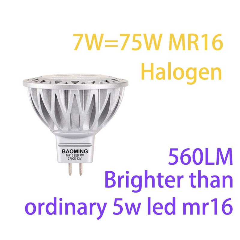 - 【Energy saving】Compared with traditional bulbs, BAOMING MR16 LED bulbs consume only 7W. MR16 light source can replace 70W halogen lamp and save 90% energy. 7W LED, can replace 50W,70W ordinary bulb