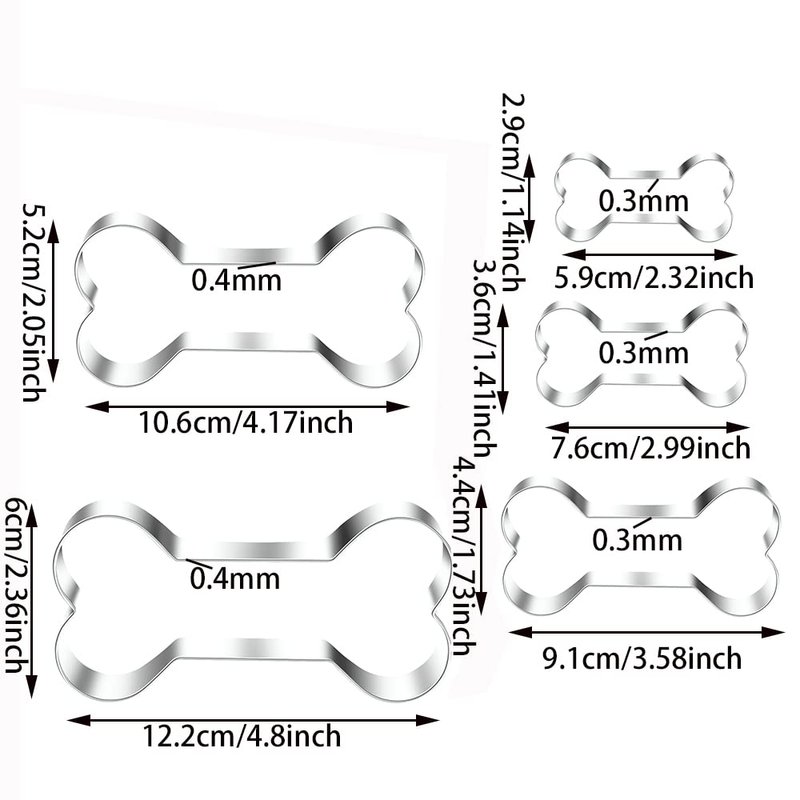 MrCookie Bone Cookie Cutters,5 pcs of different sizes,they are designed from small to big size,can meet what you need.