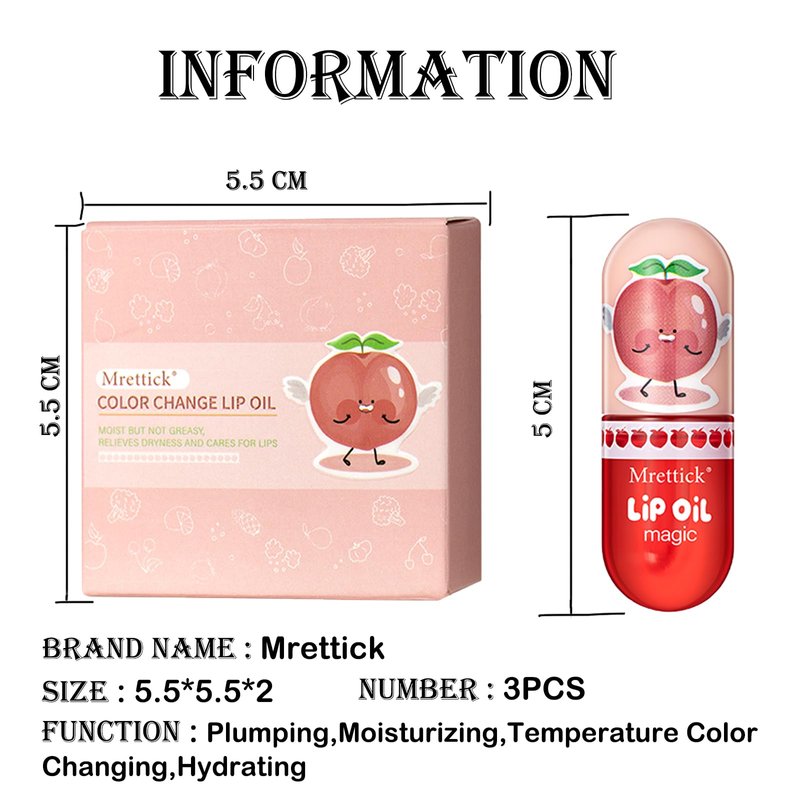 Mrettick 3Packs Hydrating Lip Oil Temperature Color Changing Lip Oil Plumping Lip Gloss Moisturizing Lip Oil Tinted for Lip Care and Dry Lip