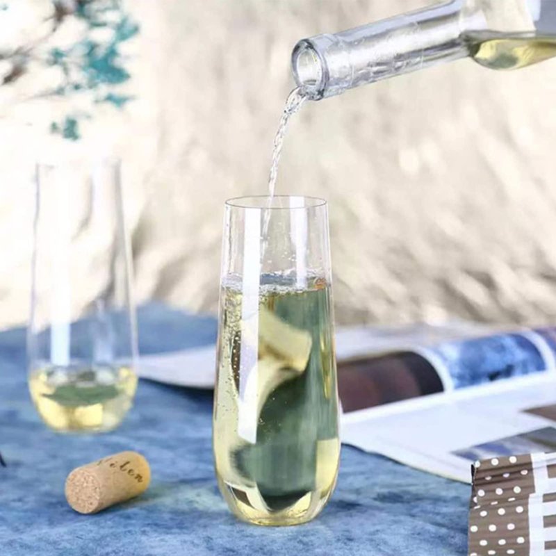 MR.FOAM 9oz Plastic Champagne Flutes, 12 Pack Stemless Disposable Toasting Glasses,Shatterproof Crystal Clear Plastic Champagne Glasses Cocktail Cups Ideal for Wedding and Shower Party Supplies