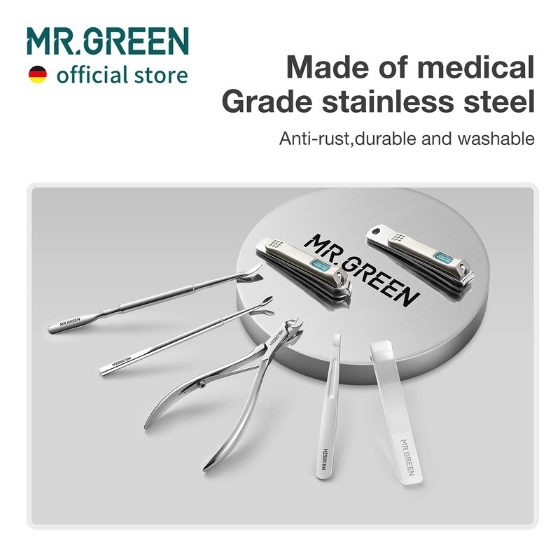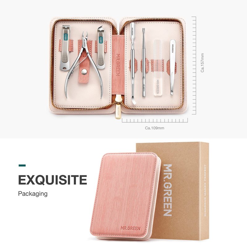 MR.GREEN 7in1 Manicure Sets Personal Care Tools Stainless Steel Professional Nail Clippers Pedicure Set Travel Case Kits (Mr-6032)