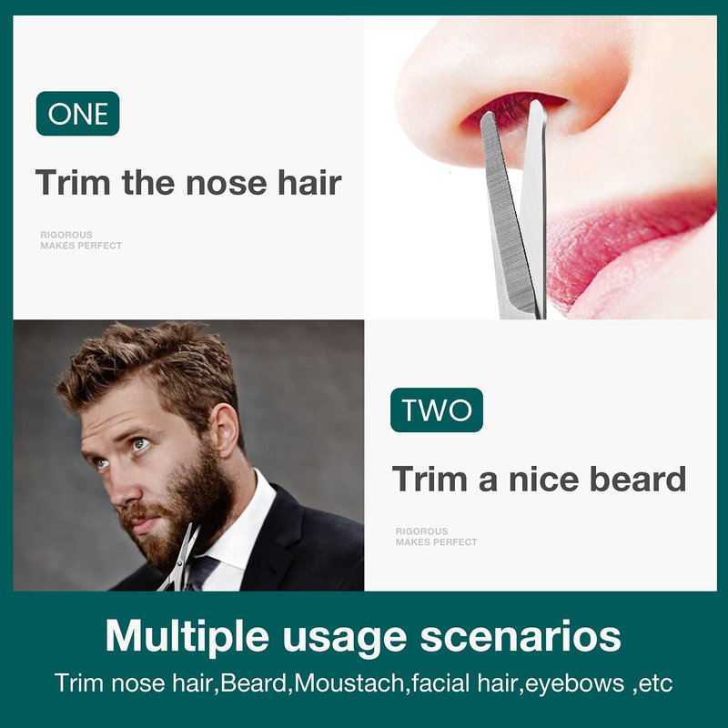 - The facial hair scissors with excellent texture can easily and comfortably trim most kinds of fine hairs, such as nose hair, beard and eyebrows.
