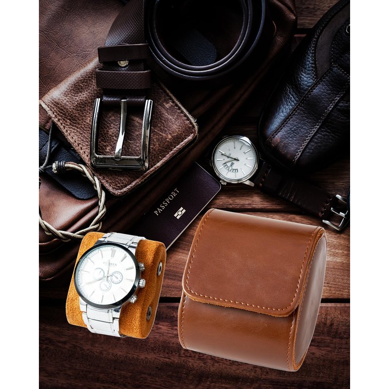 Mr.Okay Single Watch Travel Case -Classic Leather Watch Case With Perfect Texture.(Watch Carrying Case Or Organizer For Storage And Display).Mens Watch Case for Travel Handcrafted by Craftsmen.