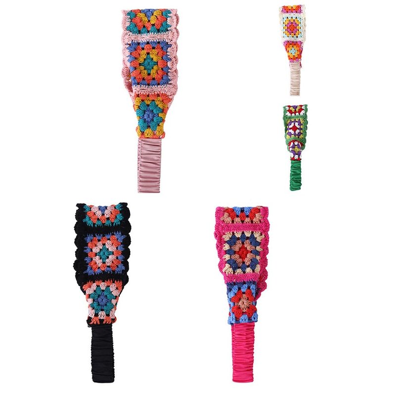 Mrotrida Women's Floral Crochet Headband Mori Girl Pastoral Knitted Hair Bandanas Elastic Crochet Head Wrap (Black)