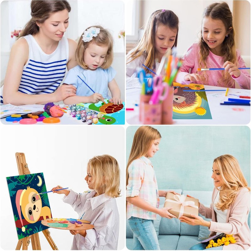 - Paint By Numbers For Kids: 4 packs of digital painting kits for kids, each digital painting kit has a set of tools and required color materials, so you can use it directly after receiving the package.