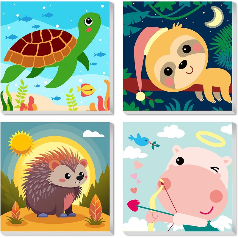 mrpwnle Framed 4 Pack Paint by Number for Kids, Paint by Numbers for Kids Ages 8-12, Paint by Numbers Kits Children Beginner, DIY Animals Acrylic Oil Painting Kits for Home Wall Decor 8x8inch
