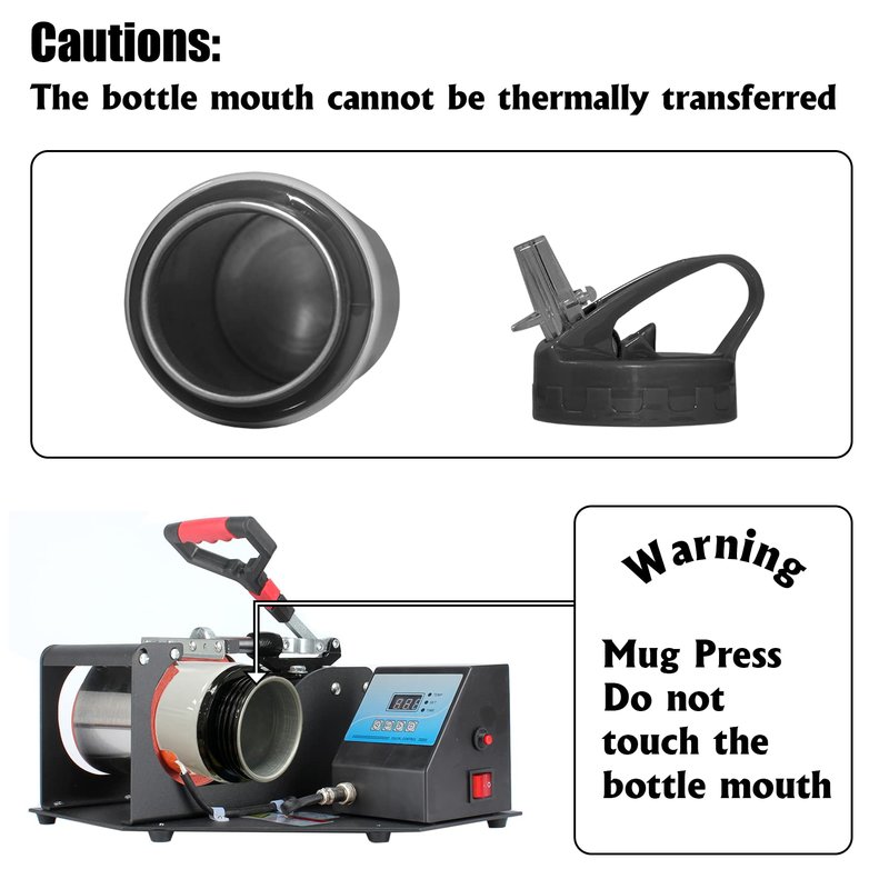 - NOTICE: the Lid is Plastic, can not be sublimation, only the white bottle body can be sublimation,only can be transferred by MUG HEAT TRANSFER MACHINE