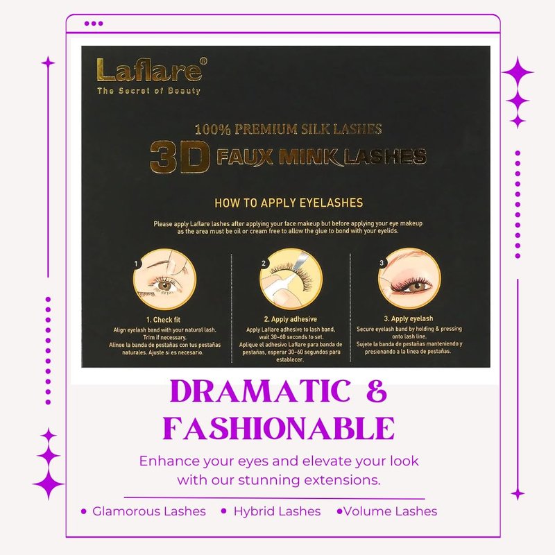 The Laflare 3D Faux Mink Lashes are perfect for those who want to add enviable volume and depth to their lash look. These lashes are created by layering soft, tapered fibers to form a medium volume, lightweight and feathery structure. With these iconic style lashes, you can achieve a dramatic look while seamlessly blending with your natural lashes for a flirty, full finish. These lashes offer all the standout features with even more volume..