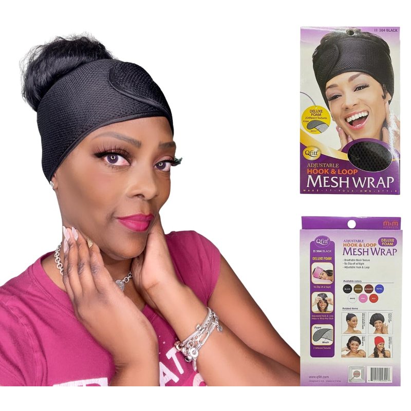 Mrs Gwen Hair & Accessories Qfitt Foam Deluxe Adjustable Mesh Headband Head Wrap Hair Scarf Night Cap (Black)