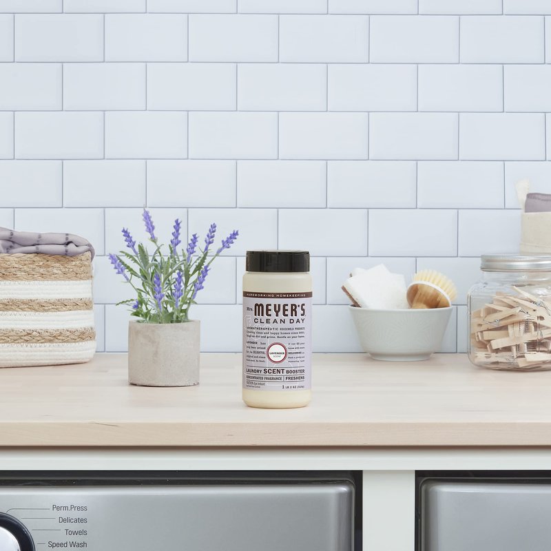 - Mrs. Meyer's Scent Boosters work in conventional and HE washing machines