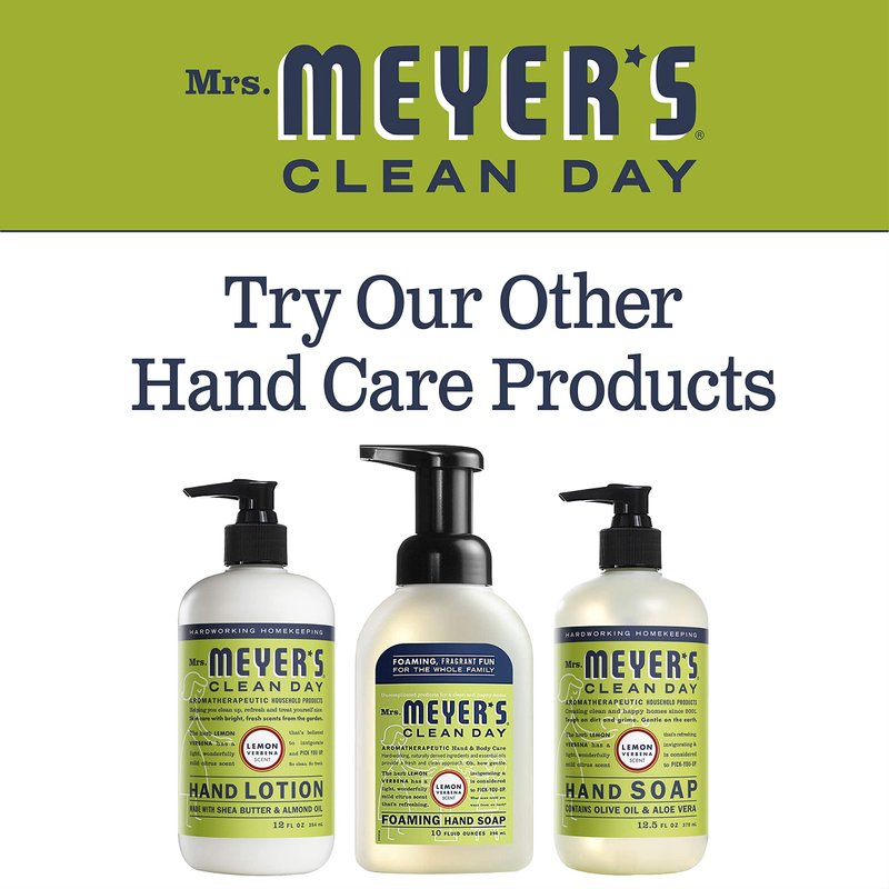 Mrs. Meyer's Clean Day hand soaps are specifically made to clean and freshen hands without over drying, while also providing a special, singular scent for your home. Lemon Verbena scented soap has a light, refreshingly mild citrus scent. This tender herb blossoms in early summer and smells bright and new through and through. This hardworking hand soap formula contains olive oil, aloe vera, and essential oils, and thoughtfully chosen ingredients that clean and freshen hands. Made without parabens, phthalates or animal-derived ingredients and always a cruelty-free formula soap. Also available in other garden-inspired scents and products such as Dish Soap and Multi-Surface Cleaner. Mrs. Meyer's - Rooted in Goodness.