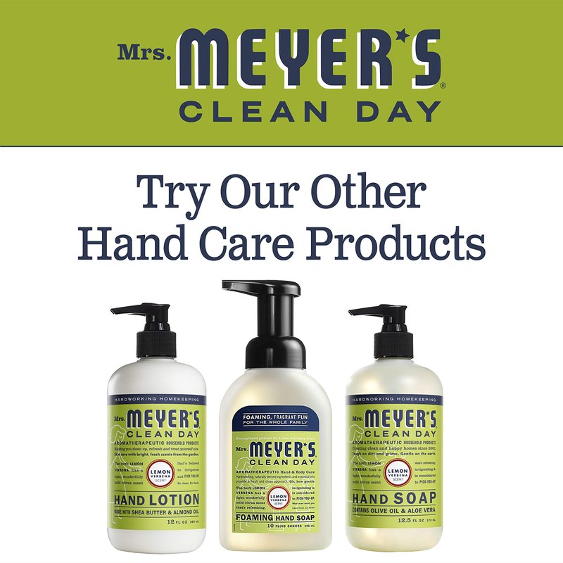 - Mrs. Meyer s Clean Day Lemon Verbena Liquid Hand Soap contains aloe vera gel, olive oil and a unique blend of natural essential oils to create a hardworking, non-drying, yet soft" Sold Individually.