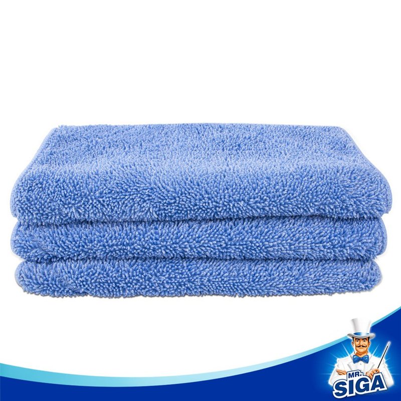 MR.SIGA Professional Microfiber Mop Refills, Pack of 3, Size: 42cm X 23cm. Double side Microfiber & Plush mop cloth. Microfiber side (Blue) can be used for Wet & Dry mopping, attract fine dust & hair effectively, Plush side (Beige) is good for floor waxing to make shine of the floor. Mop cloth assembly: Simply put the mop cloth in the ground, flip it under the clip, use two hands on both end to clip the mop cloth. Avoid & Don't put your finger underneath the clip while closing. Put the mop cloth in laundry bag when washing, and no fabric softener.