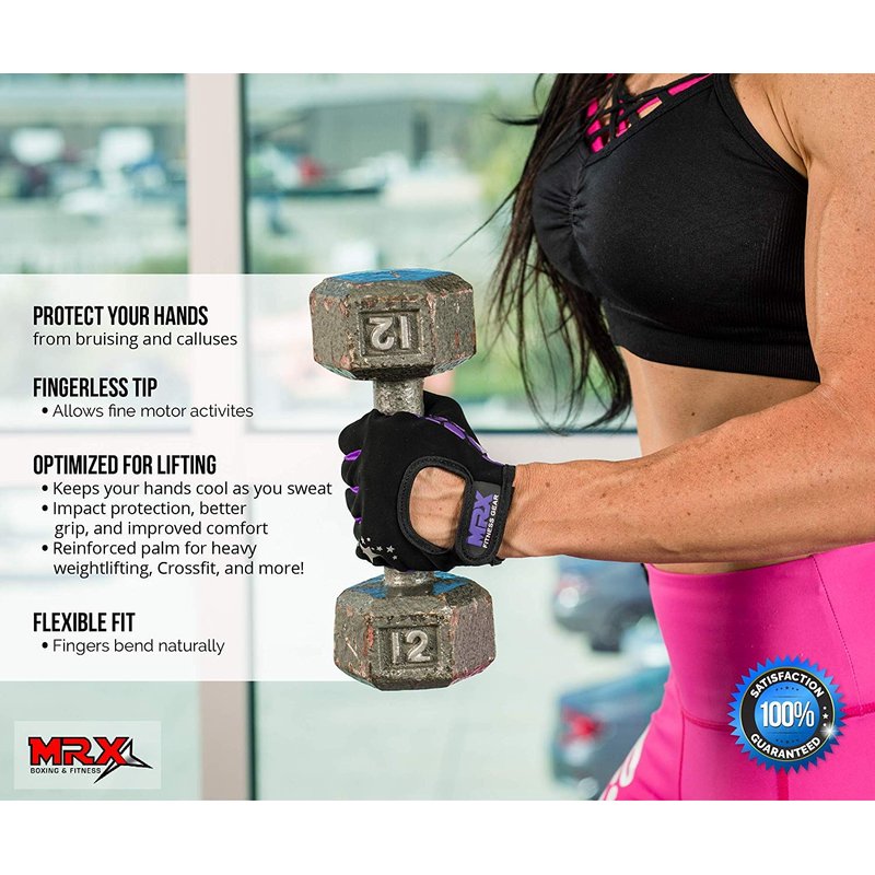 MRX Adjustable Weight Lifting Gloves Fingerless Gloves for Women, Reinforced Palm and Secure Closure, Leather Hand Protection Gear for Gym, Training and Exercise