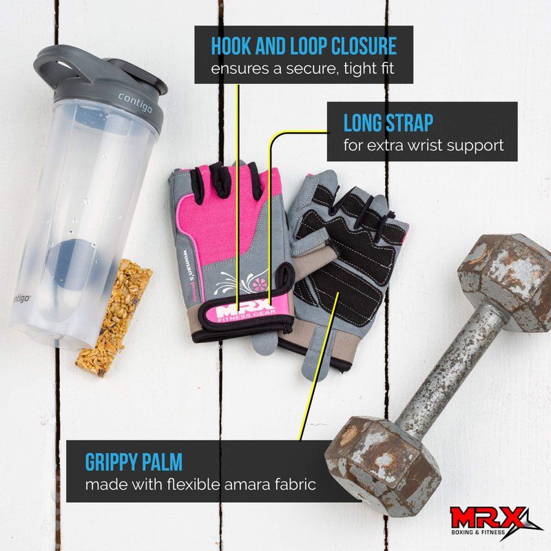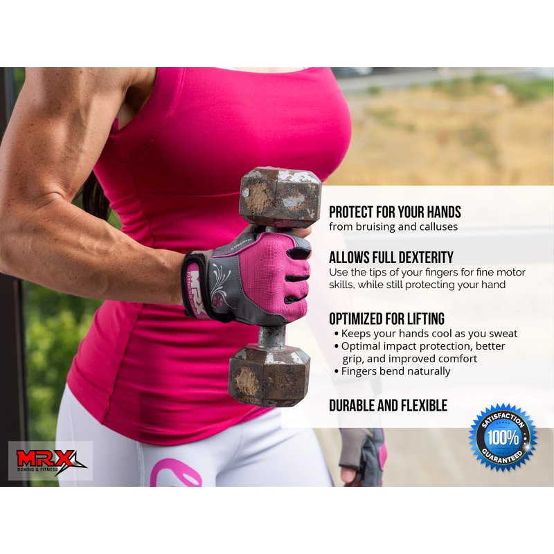 MRX BOXING & FITNESS Weight Lifting/Exercise Grip Gloves for Women, Great for Workouts, Weight Training and More, Pink Small