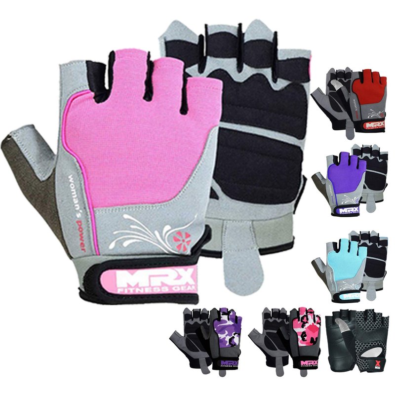 MRX Women Weight Lifting Gloves in Gray Amara Leather. Perfect for Maximum Impact Protection and Better Grip. Chevron Stretch Printing Keep Your Hands Cool Stretch "Ventilator Mesh" Allows Hand and Fingers to Bend Naturally Padded Fingers for More Comfort on the Handlebars Pull Tab on the Wrist with Molded Adjustable Loop and Hook Fastener and Fins for Easy Removal