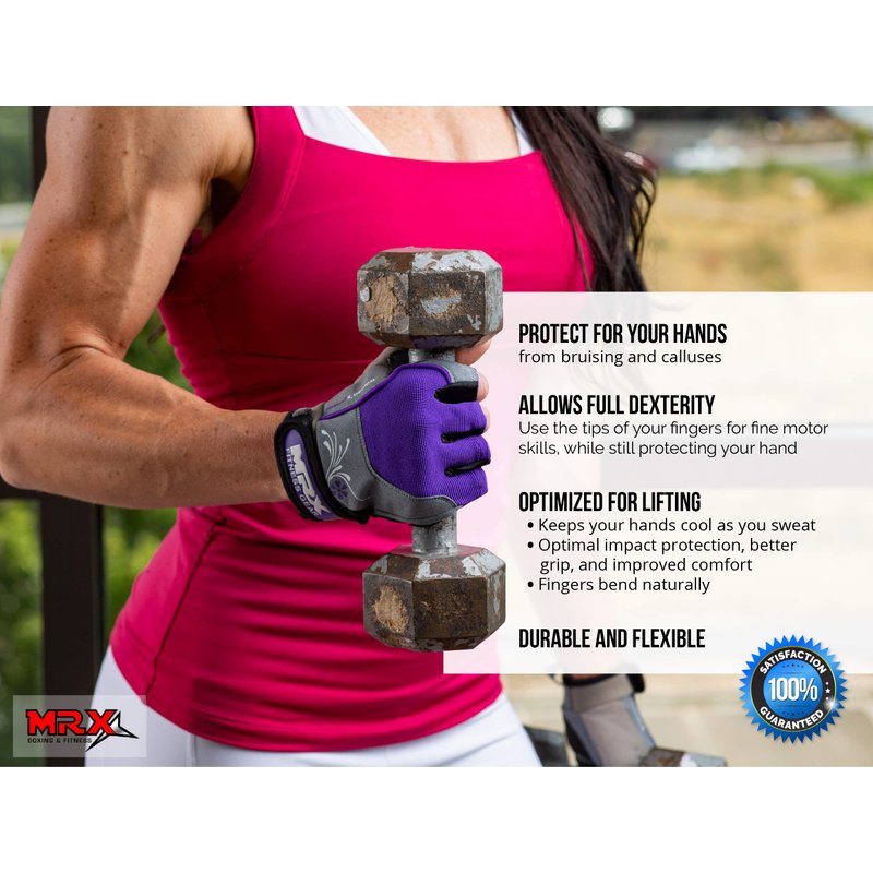MRX BOXING & FITNESS Weight Lifting/Exercise Grip Gloves for Women, Great for Workouts, Weight Training and More, Purple Medium