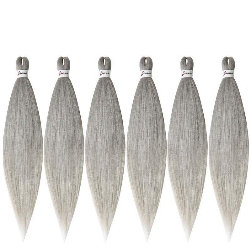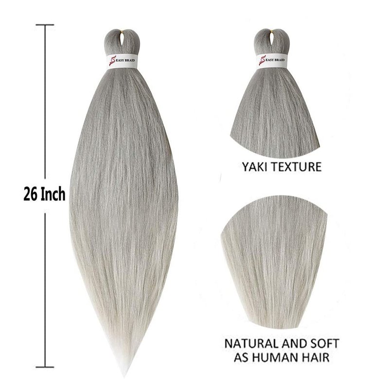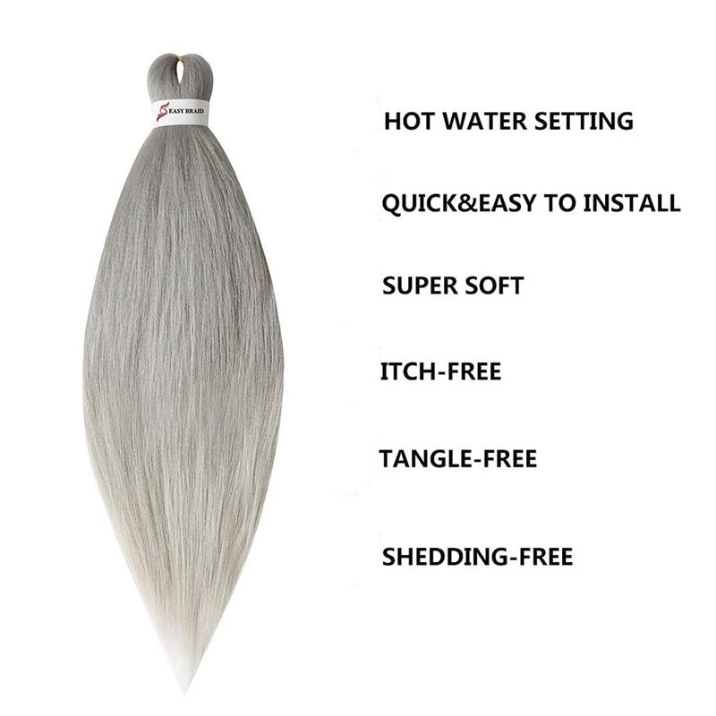 MSBELLE 6Pcs/Lot Pre Stretched Braiding Hair 26 Inch Ombre Braiding Hair Hot Water Setting 100g/Pack Crochet Synthetic Braids Hair Silver Grey
