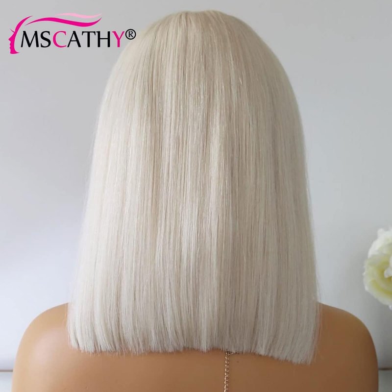Mscathy Platinum Blonde 13X4 Human Hair Bob Wig HD Lace Front Breathable Hair Pre Plucked Transparent 150% Density Lace Front Wigs Human Hair for Woman 10 Inch