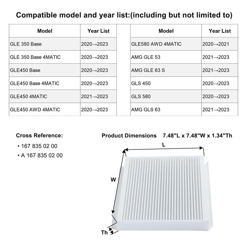- 【Cross Reference】Compatible with select Mercedes-Benz cabin air filter, Replacement for A1678350200, 1678350200, CU19014, Always check fitment using the Vehicle Filter.