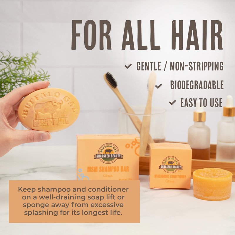 MSM Shampoo Bar + Hyaluronic Hair Conditioner Bar, Solid Bar Shampoo and Conditioner for Hair Growth, Non-Soap, For All Hair Types, Citrus, Set of 2