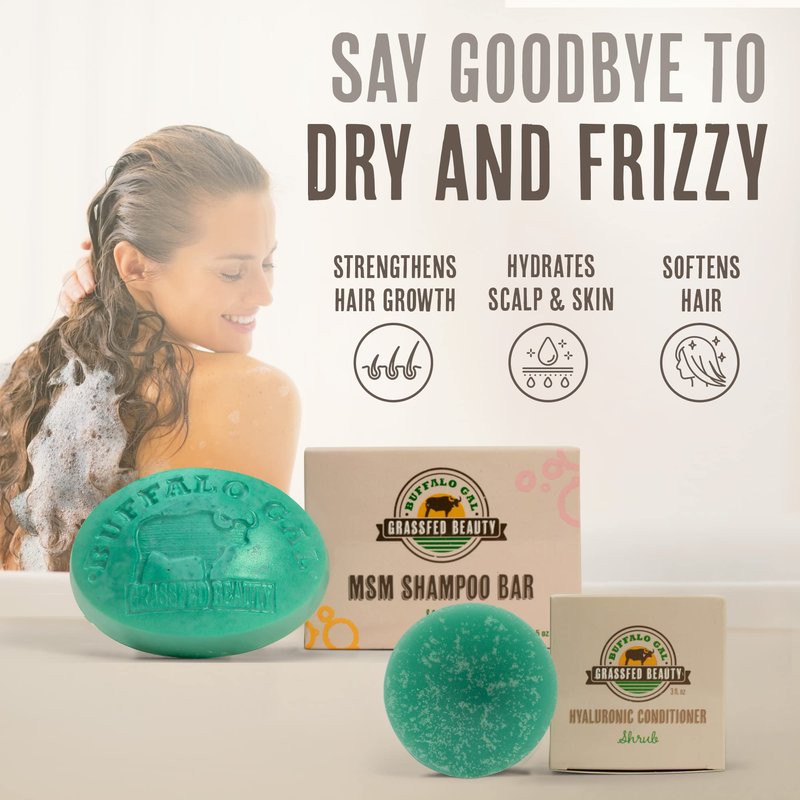 MSM Shampoo Bar + Hyaluronic Hair Conditioner Bar, Solid Bar Shampoo and Conditioner for Hair Growth, Non-Soap, For All Hair Types, Shrub, Set of 2