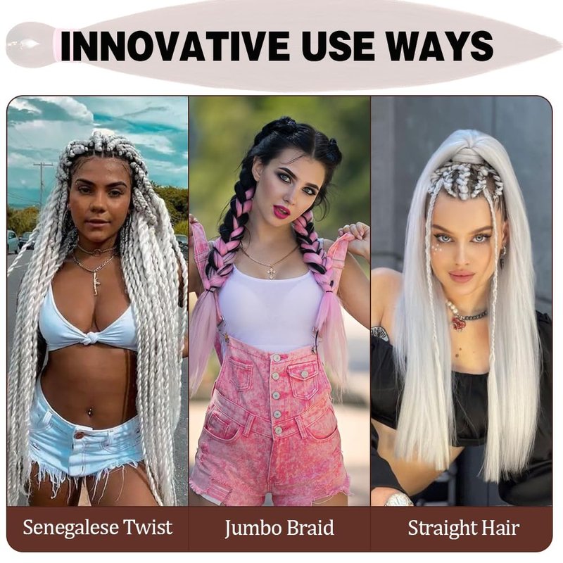 Material: Pre-stretched braiding hair, High Quality Low Temperature Fiber,it won't fade or tangle easily - Compared with human hair, the synthetic fiber can hold your hairstyles well regardless of the weather & need little maintenance - Easy to care, our extensions can last long time.
