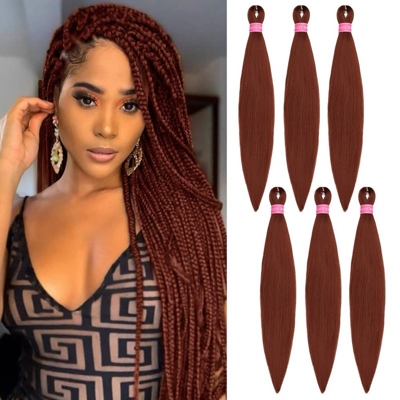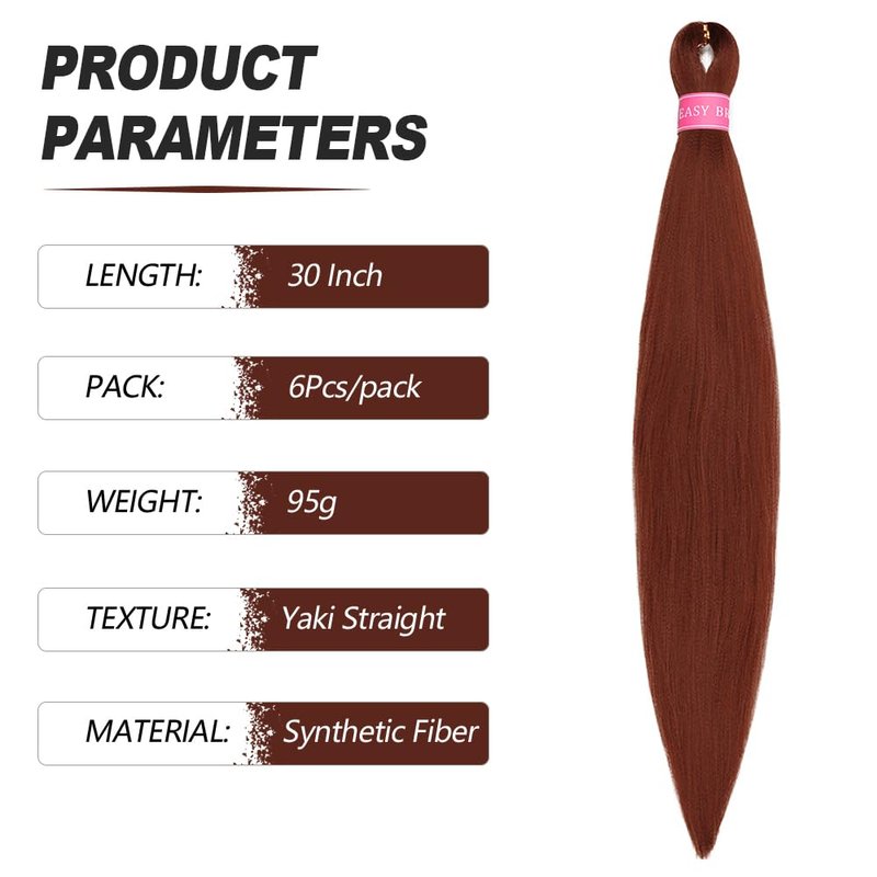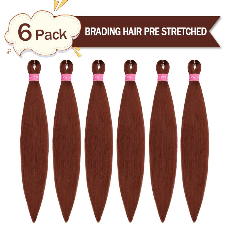 MSMUSAS Braiding Hair Pre Stretched 6 Packs 30 Inch Hot Water Setting Synthetic Prestretched Twist Braid Hair Yaki Straight Braiding Hair Extensions for Braids(30Inch, Dark Ginger)
