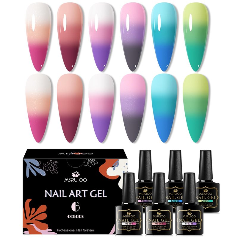MSRUIOO Color Changing Gel Nail Polish Set, 6 Colors Mood Temperature Color Change Gel Polish, Pink Rose Violet Purple Blue Green Color Changing Nail Polish Gel