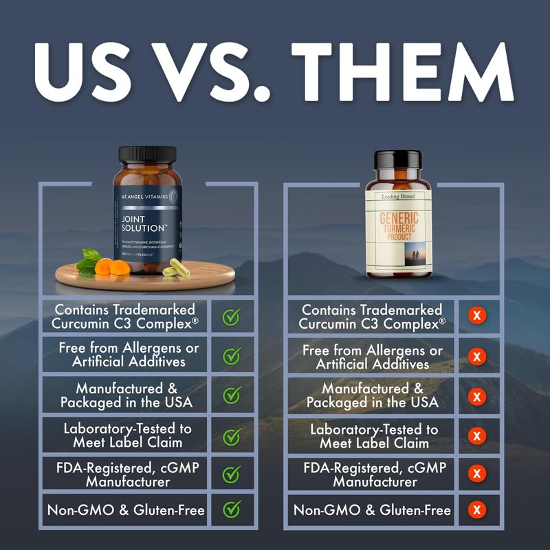 - Contains Turmeric Curcumin C3 Complex with BioPerine - Mt. Angel Vitamins Joint Solution utilizes top quality ingredients like Turmeric Curcumin C3 Complex with Black Pepper to promote joint health.