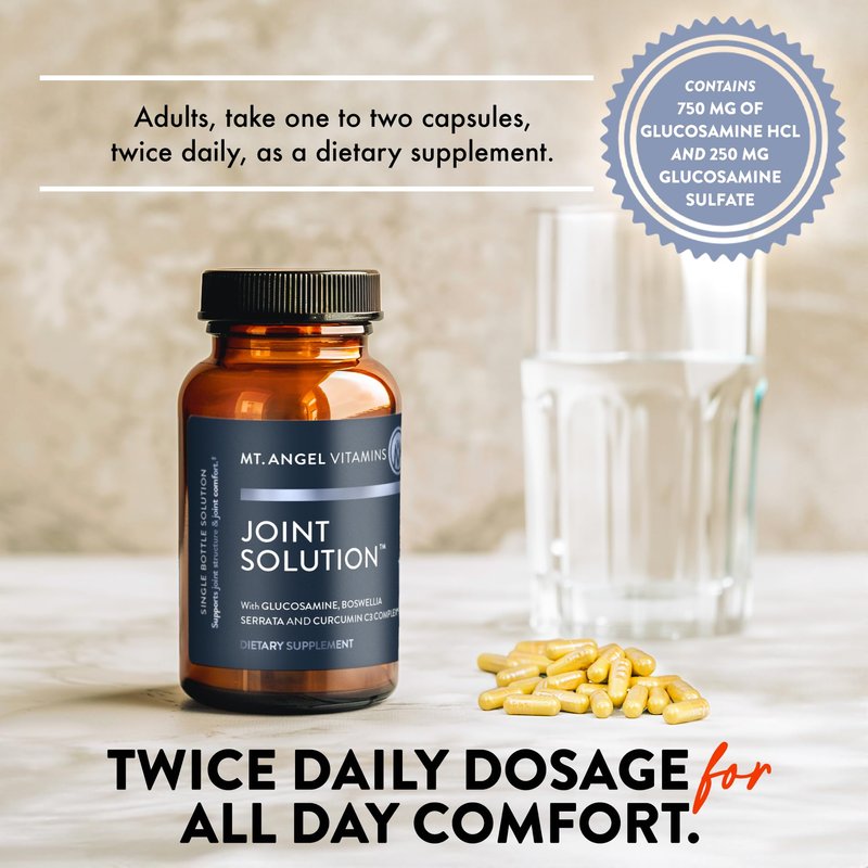 - 3X Potency Formula - Mt. Angel Vitamins Joint Solution uses a triple-strength formula to deliver maximum effectiveness when it comes to optimizing joint health and providing fast-acting relief from discomfort or stiffness due to minor injuries or overuse of muscles and joints associated with everyday activities.