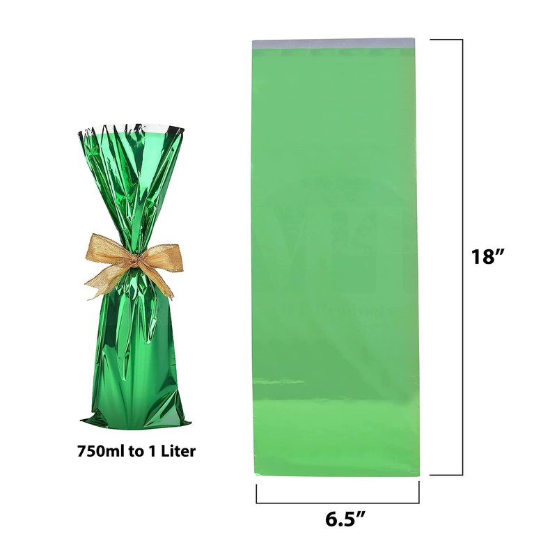 MT Products Metallic Mylar Wine Green Gift Bags for Bottles Sparkle Look - Great for a Wine Pull - (25 Pieces) (Ribbon and Rope Not Included)