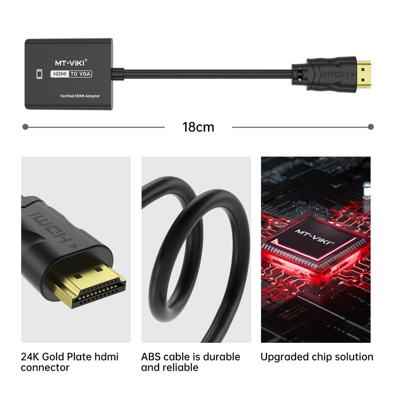 - ✅【1 Packs】MT-VIKI HDMI to VGA adapter connects a computer, desktop, laptop, or other devices with HDMI port to a monitor, projector, HDTV, or other devices with VGA port; Very convenient to do a business presentation with your laptop and projector, or extend your desktop screen to a monitor or TV. ✅Pls note: a VGA cable is required.