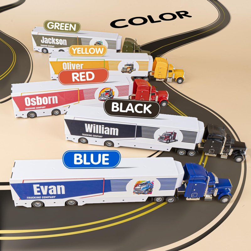 - Customizable Fun: This semi truck toy is personalized with your child's name, making it a unique treasure! Just provide the name you want, and we'll craft a one-of-a-kind truck that adds a personal touch to playtime, ensuring your child feels special and cherished with every adventure.
