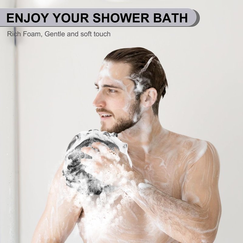 Loofah Sponge Bath Sponge Soft Mesh Shower Puff Loofah for Men, Exfoliating Body Scrubber for Women, Shower Accessories