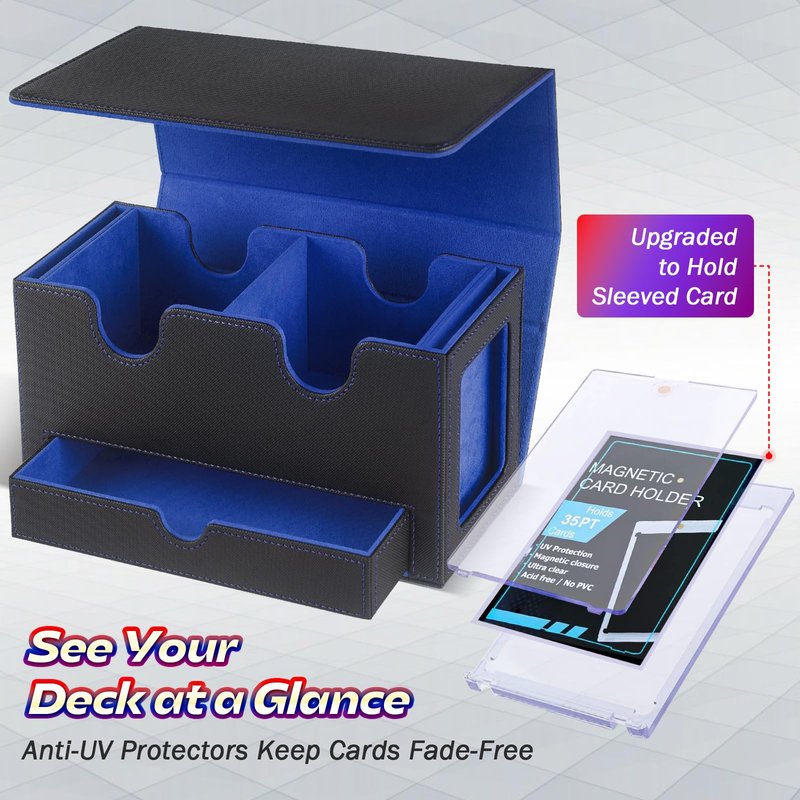 - 【Enhanced Accessories】2 Anti-UV upgraded card protectors can hold sleeved cards, enhancing security and preserving your flagship card in impeccable condition for years to come. 4 additional dividers allow you to categorize your cards with precision and keep them impeccably tidy.