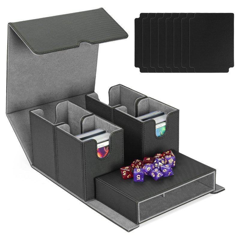 - 【Expertly Designed for Ease of Use】: Featuring a wide U-shaped opening, accessing and returning cards is a breeze, enhancing your overall gaming experience. The integrated dice tray keeps your dice organized and ready for action, exactly where you need them. Additionally, 8 additional dividers allow you to meticulously categorize and maintain impeccable tidiness of your card collection.