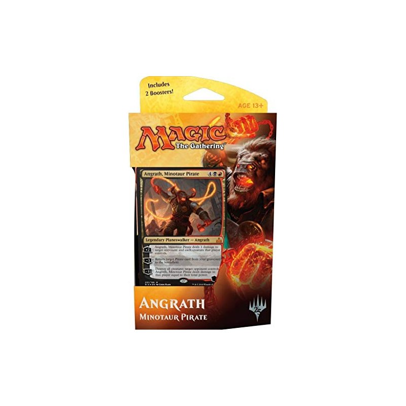 Experience the thrill of piracy and control the battlefield with the Magic: The Gathering Rivals of Ixalan Angrath Planeswalker Deck! This sealed pack contains everything you need to jump straight into the action, including a powerful Minotaur Pirate Planeswalker - Angrath himself. With a variety of creatures, spells, and lands at your disposal, you'll be able to take on any opponent and emerge victorious. Explore the vast world of Ixalan and its treasures, battling other pirates and competing for glory. Build your collection and create your own unique strategies, all while embodying the power and might of Angrath, the Minotaur Pirate. Don't miss out on this exciting opportunity to dive into the world of Magic: The Gathering.