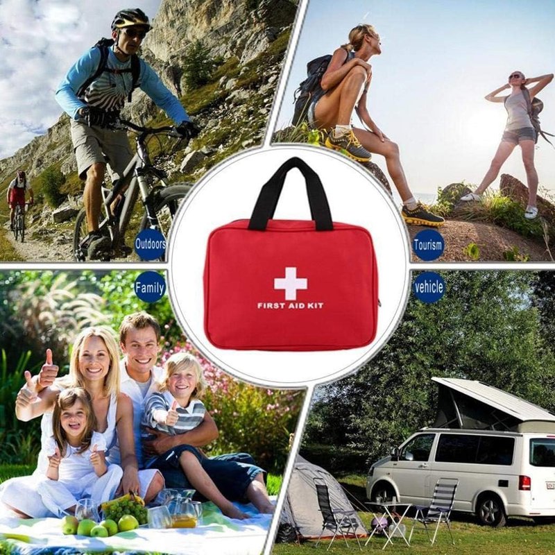 - 🔵The first aid bag comes with carrying handles, inside with organized mesh pockets, keep your first aid items neat and organized.It is small enough to pack in your carry-on luggage but large enough to hold all the items you need in a small compact package.