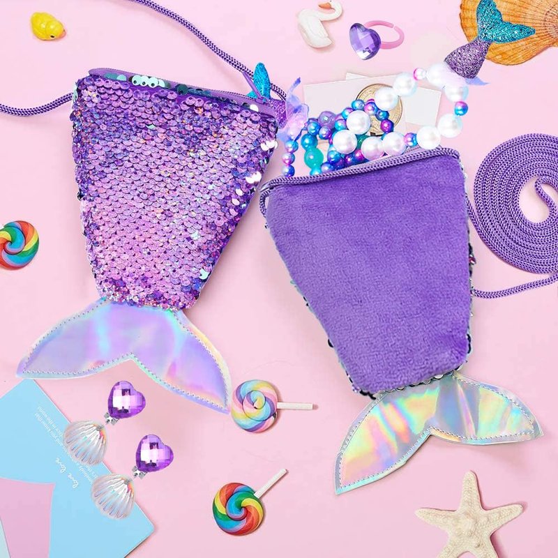 - Mermaid Coin Purse for Little Girls Xmas Gift - MTGOCHA toddler girls mermaid necklace bracelet kit for kids is perfect princess girls christmas gift, also ideal gift for birthday halloween, new year, schoolback day thanksgiving gift for baby girls.with this mermaid costume play jewelry set for girls, your princess girls will outstanding and highly anticipated. sparkling coin mermaid purse for kids girls can organize this girls mermaid necklace and mermaid bracelet play set after use.