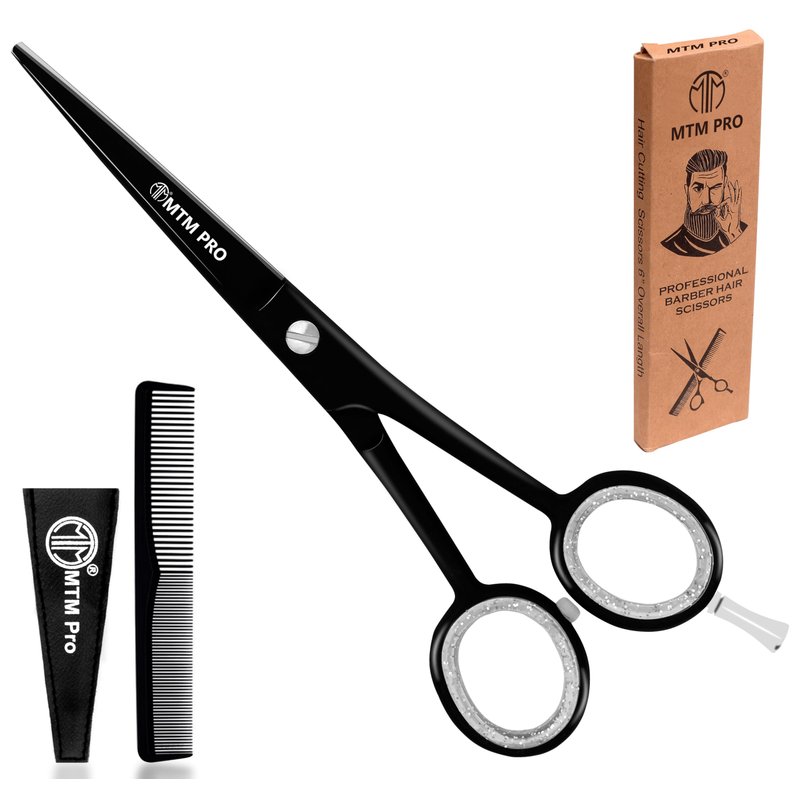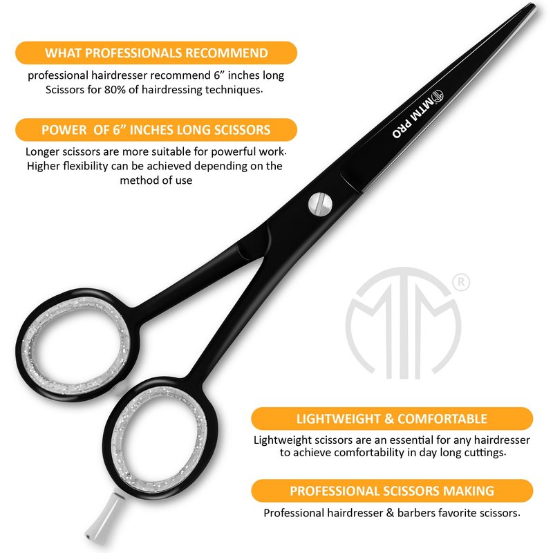 MTM PRO Professional Hair Cutting Scissors 6", Barber Scissors to Cut Hair, Hair Shears for Hair Cutting, Premium Stainless Steel Barber Shears for Men & Women, Kids, Adults, & Pets (Black, 6")
