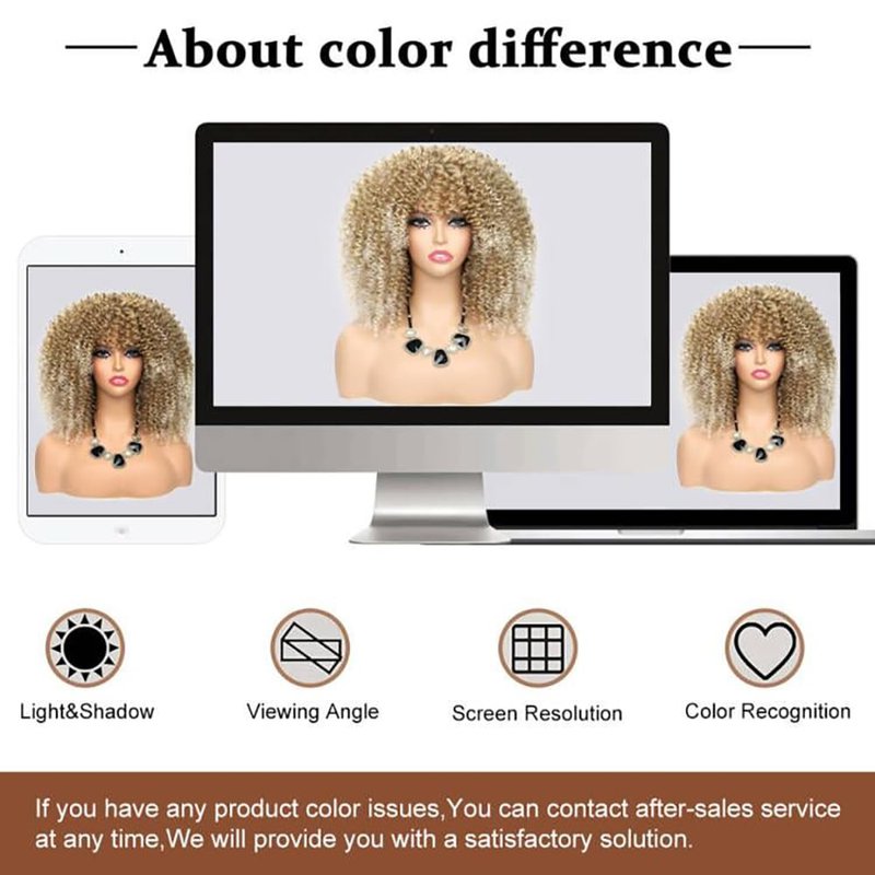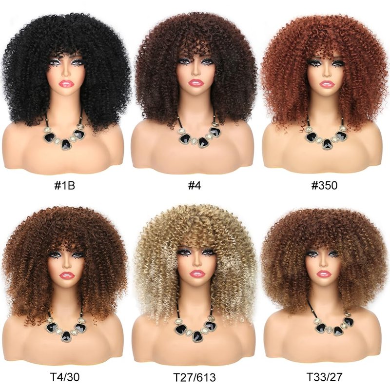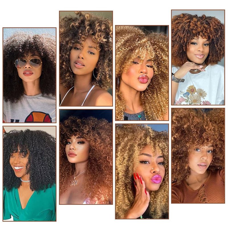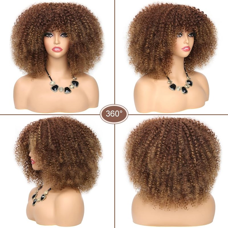 Mtmei hair Short Afro Curly Wig with Bangs Natural Curly Wigs 16Inch 290G T33/27 Hair Arukihair Wig Kinky Curly Wigs Synthetic Hair for Women(16Inch,T33/27)