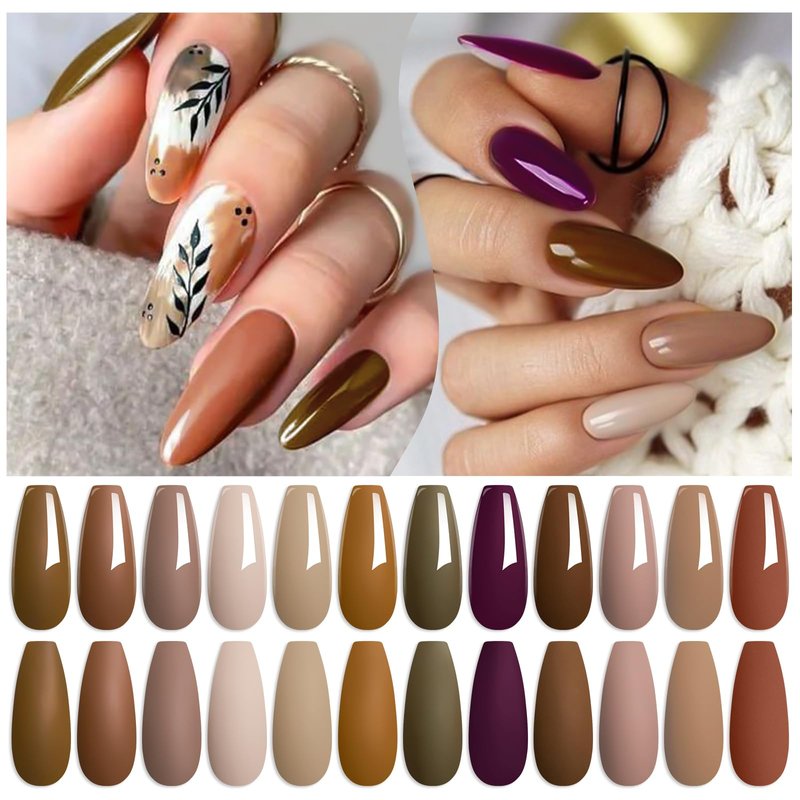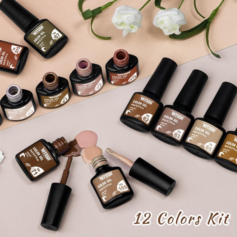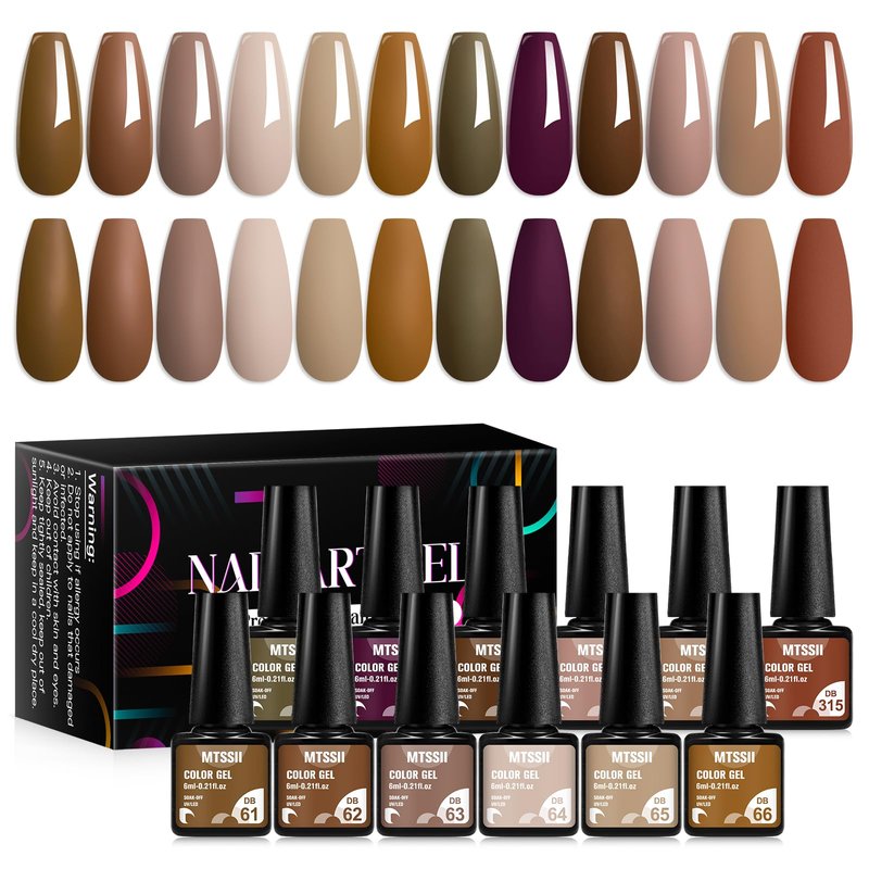 MTSSII 12 Colors Brown Gel Nail Polish Set, Fall Winter Gel Nail Polish Kit, Soak Off UV/LED Nail Polish Nail Art Design Salon Home Gifts for Women