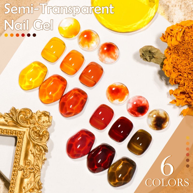 - JELLY GEL NAIL POLISH:Bring back the 90’s trend with jelly nails! Jelly gel polish is a popular nail trend that gives your nails a glassy, see through look that resembles the same trend look of Jelly Shoes! Translucent gel nail polish set contains 6 colors hot pink green blue purple yellow orange neon nail polish.