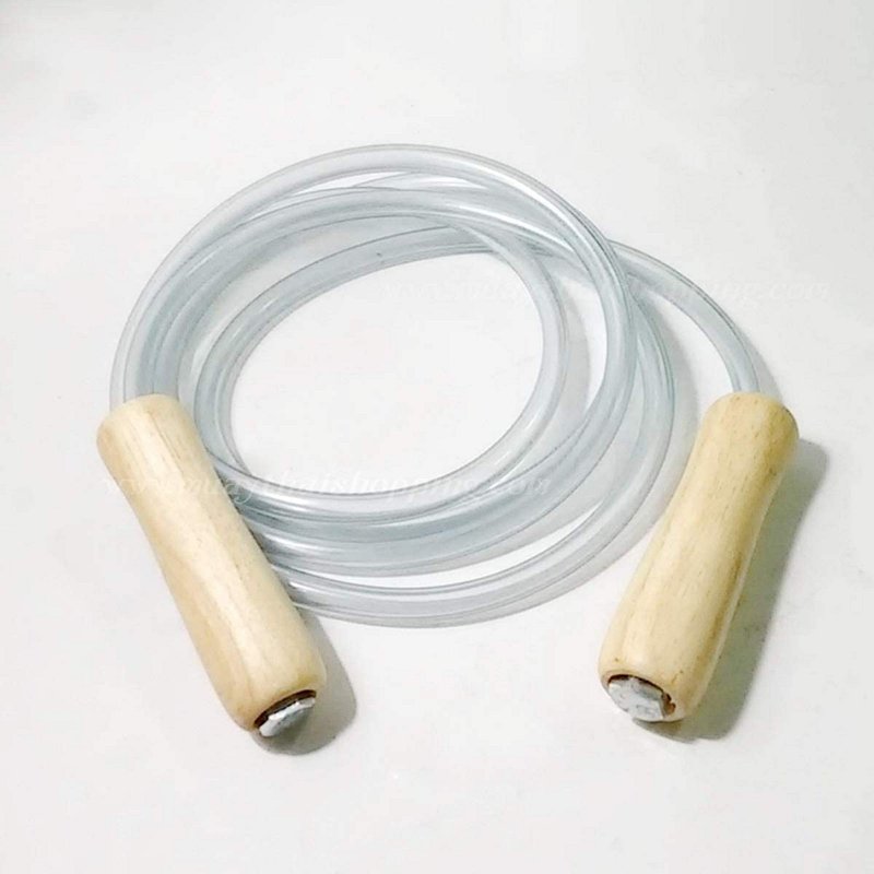 - Muay Thai style jump skipping rope 10.3 mm diameter PVC rope Industrial grade 2.7 M. long with handles. Unable to adjust, recommended for heights 5'7"-5’9”. Product from LUNGCHA of Thailand